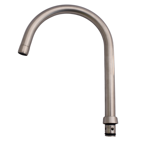 Genuine Abode Bellagio replacement tap spout in brushed nickel. The 1306R spout comes complete with O-Ring Kit and Perlator.