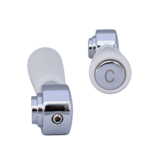 Genuine Rangemaster replacement cold handle in chrome and white for the Rangemaster Aquaclassic 2 TAC2 tap with 28 spline valves. These handles will only fit taps with 28 spline valves (3561R). 3044R SP3044. Please check your current handle design is the same as this replacement before placing your order as there are various handle versions. Please get in touch if you'd like us to help.