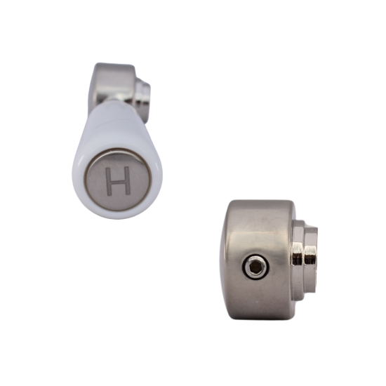 - Quality materials with a brushed nickel and white finish, with H letter etching (also available in chrome and white)