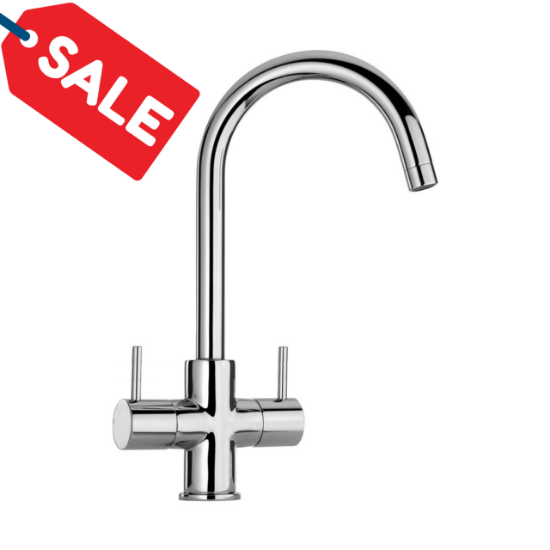 Precision-engineered from brass in Italy, our Modina kitchen mixer tap is easy to operate and offers sophisticated style in your kitchen. The tap has a sleek polished chrome finish and hot/cold etching on the handles.