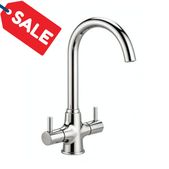 Precision-engineered from brass in Italy, our Onda kitchen mixer tap is a stylish choice for any kitchen. The tap has a sleek polished chrome finish with swan neck spout, plus hot/cold etching on the handles.