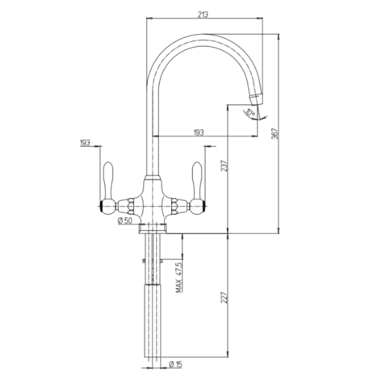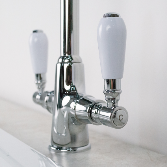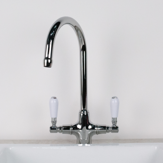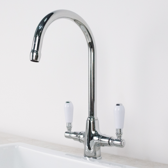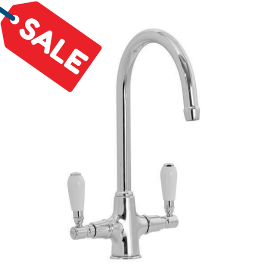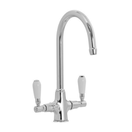 Precision-engineered from brass in Italy, our Varo traditional swan neck kitchen mixer tap is easy to operate and brings elegance to your kitchen space. The tap has a sleek polished chrome finish and hot/cold etching on the handles.