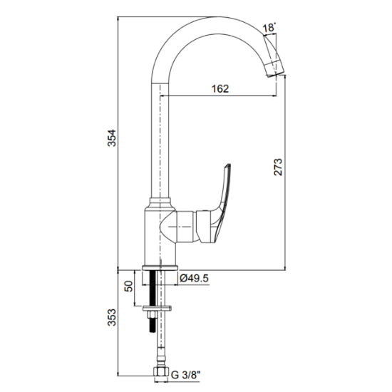- Handle operates forwards and backwards - 85mm space is required behind the tap (from the centre of the tap hole to the splashback)